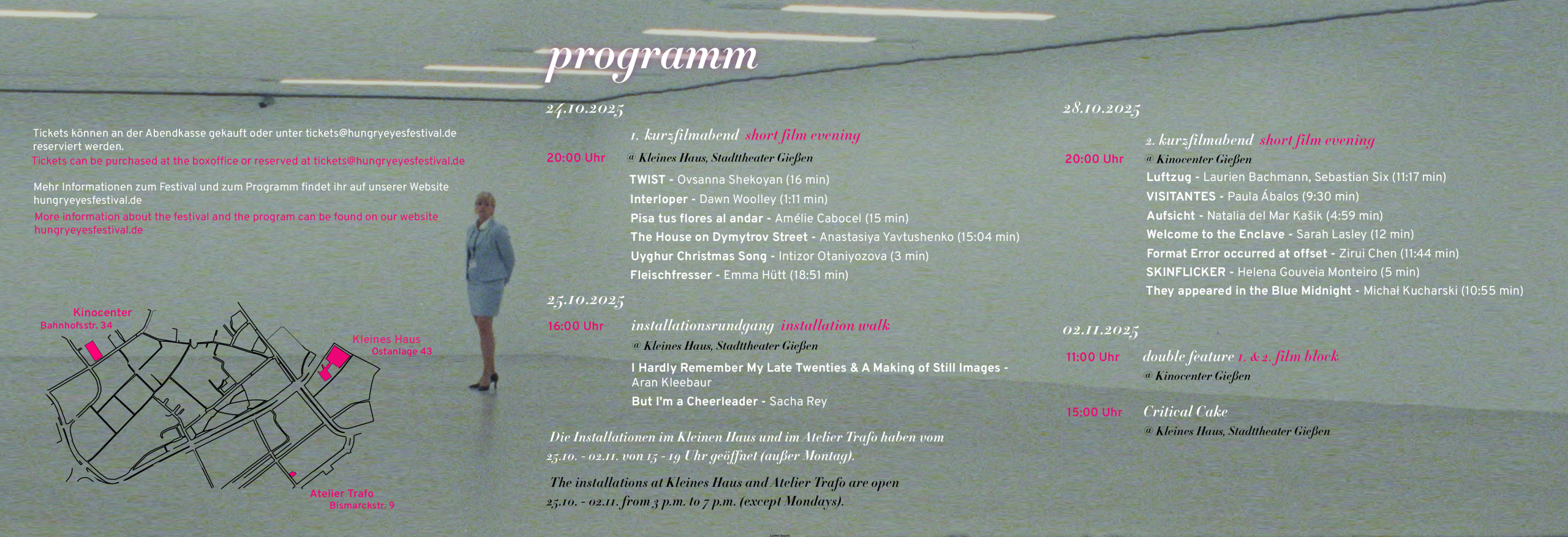 Emma Hütt (er/sie): *1998 ist Regisseur:in, Autor:in und Filmemacher:in aus Berlin. Nach dem Studium der Angewandten Theaterwissenschaften in Gießen studiert Emma Filmregie an der DFFB Berlin. Emma ist Teil des queerfeministischen Theaterperfomancekollektivs schwestern. Emma Hütts und Tina Mufflers erster gemeinsamer Kurzfilm Bleifrei 95 feiert in Locarno 2025 premiere.